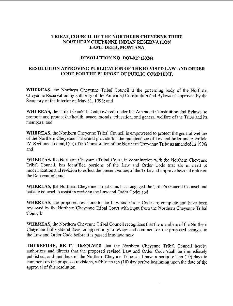 Public Notice Comment on Draft Law Order Code.10.22.24